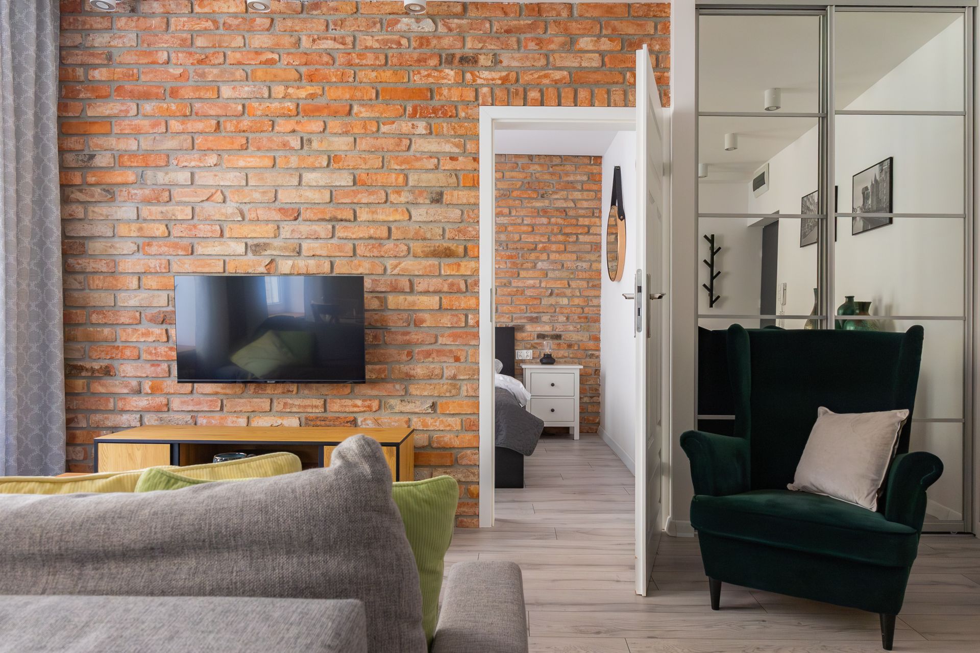 Salon z rozkładaną sofą dla dwóch dodatkowych gości oraz telewizorem